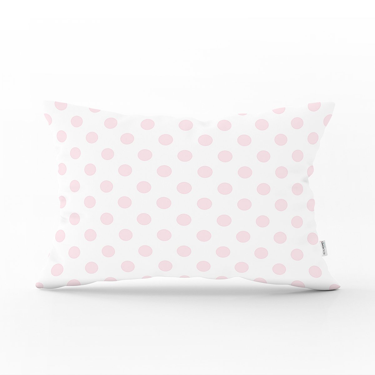 Pudra Puantiyeli Dijital Baskılı Dekoratif Kırlent Dikdörtgen Yastık Kılıfı