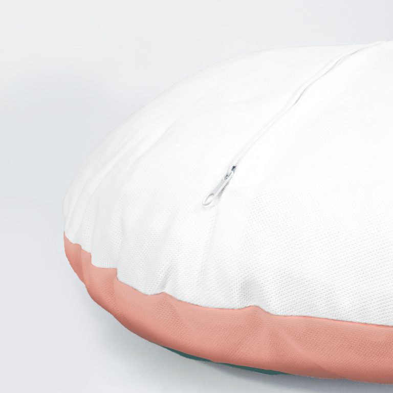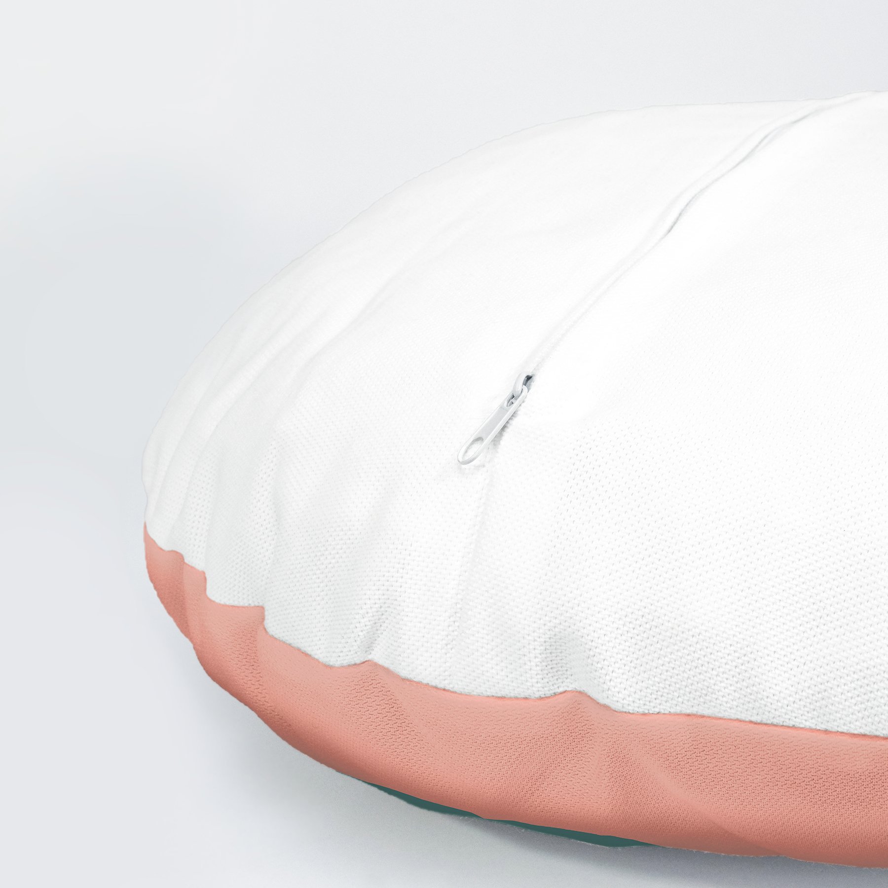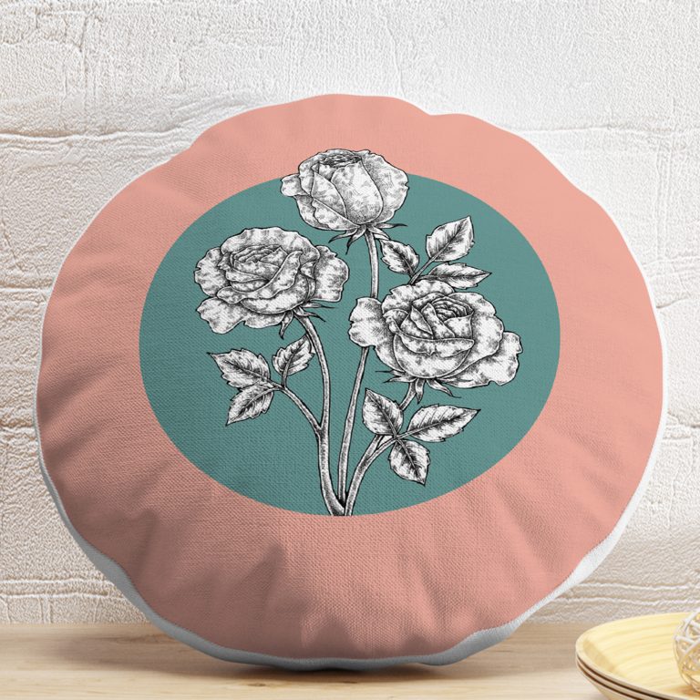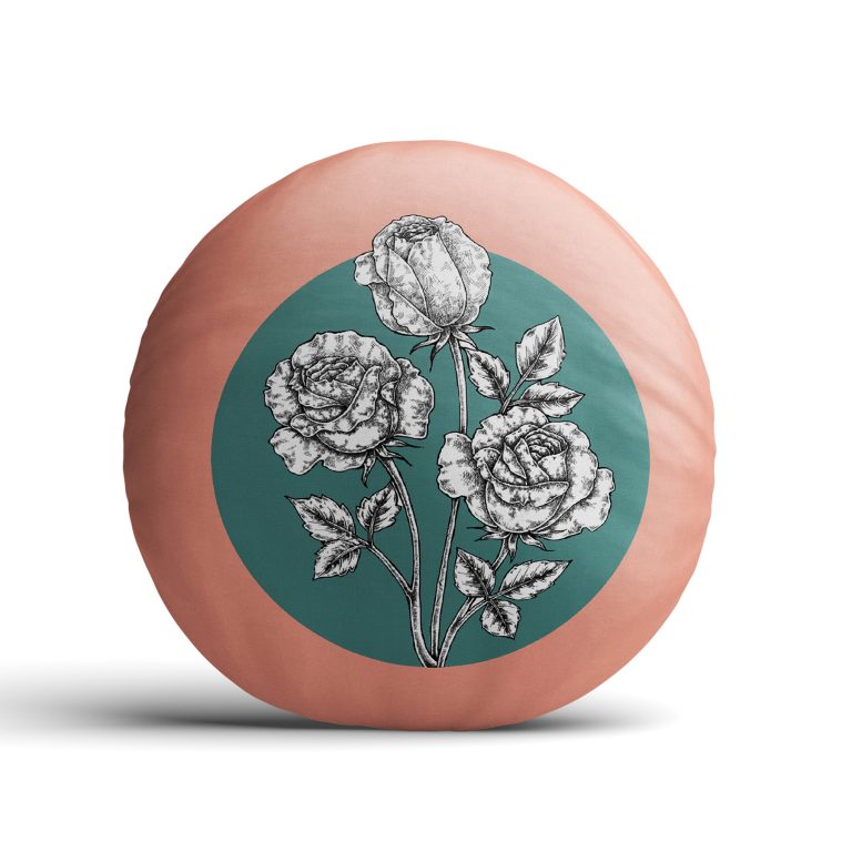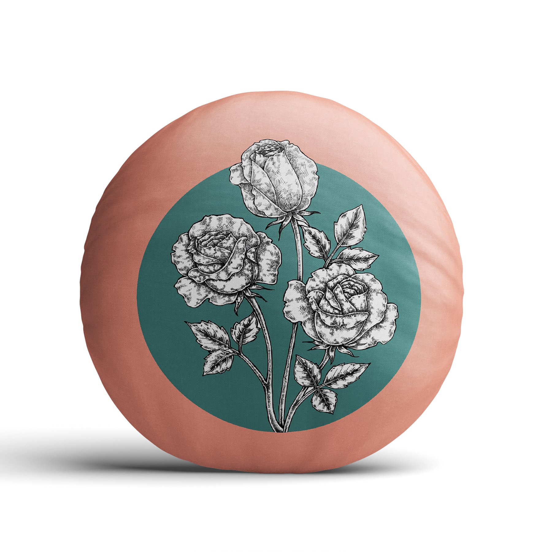 Pudra Yeşil Zeminli Beyaz Gül Tasarımlı Yuvarlak Yastık Kırlent Kılıfı
