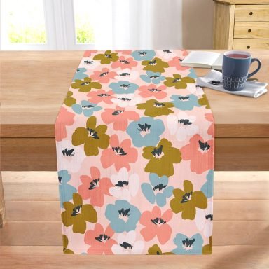 Pudra Zeminde Onedraw Çizimli Renkli Çiçek Desenli Dijital Baskılı Modern Dikişli Şönil Runner