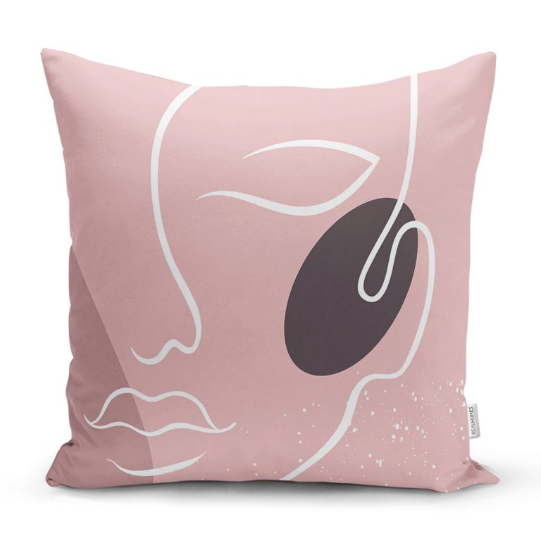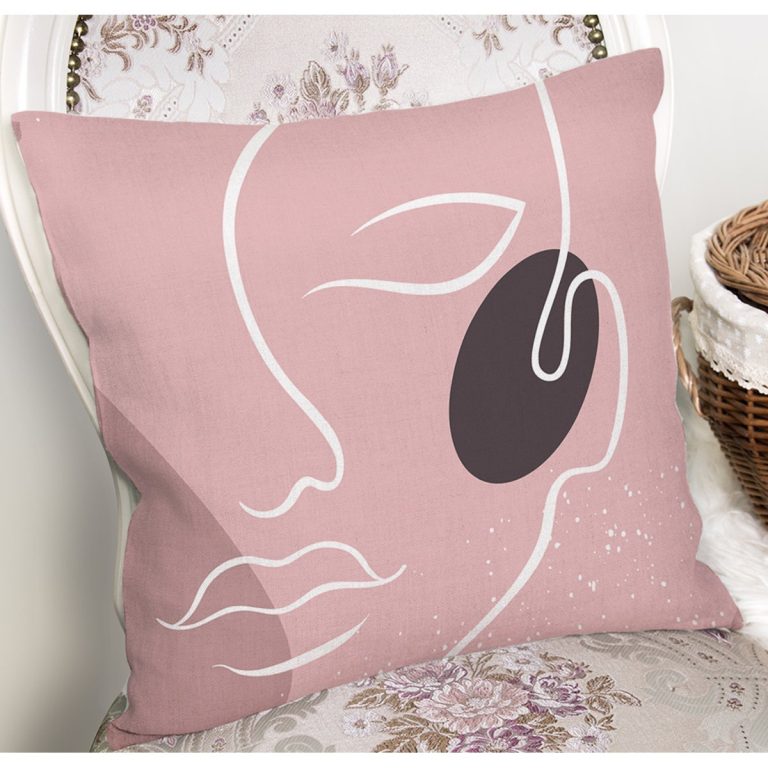 Pudra Zeminde Onedraw Çizimli Silüet Dijital Baskılı Modern Yastık Kırlent Kılıfı