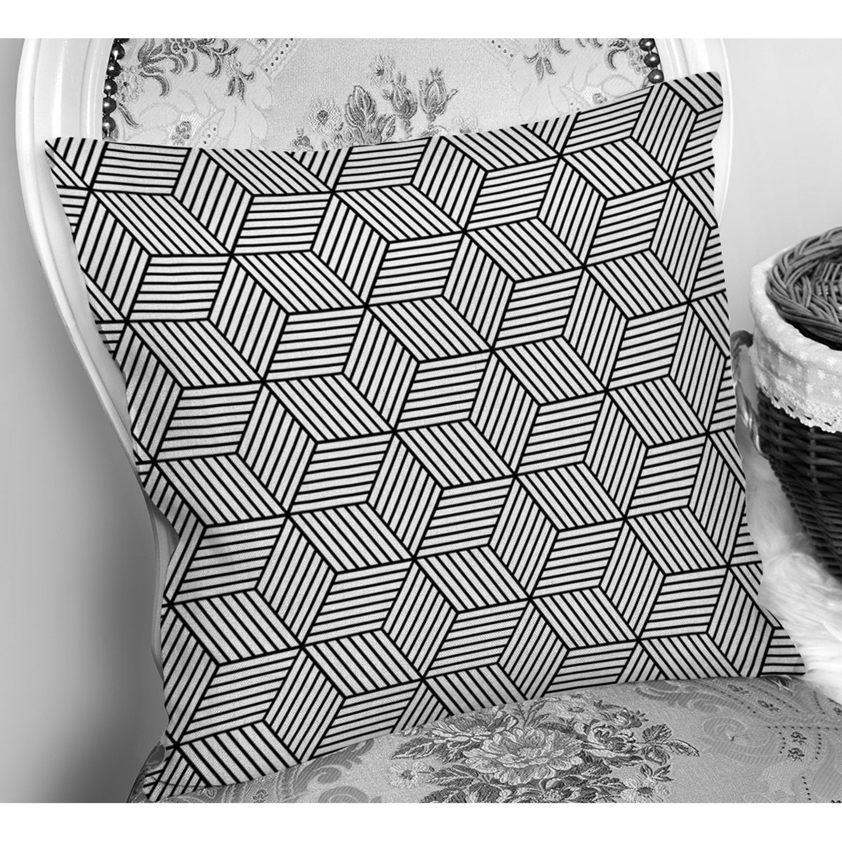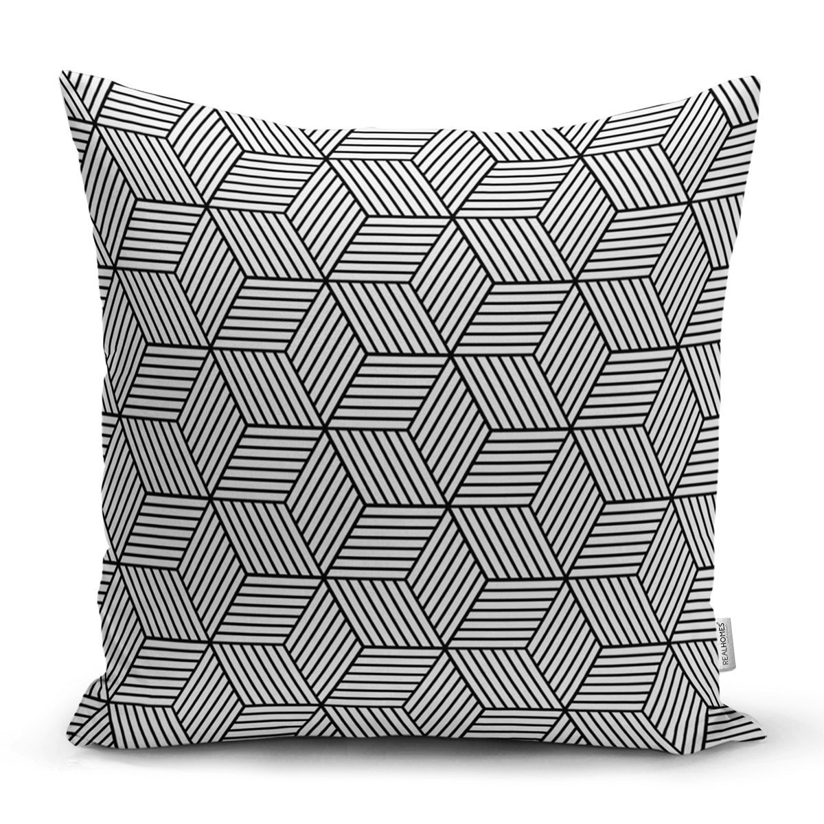 RealHomes 3D Cube Desenli Dijital Baskılı Modern Yastık Kırlent Kılıfı