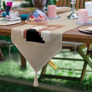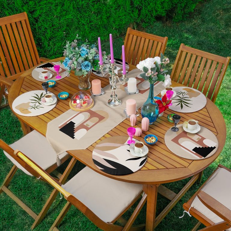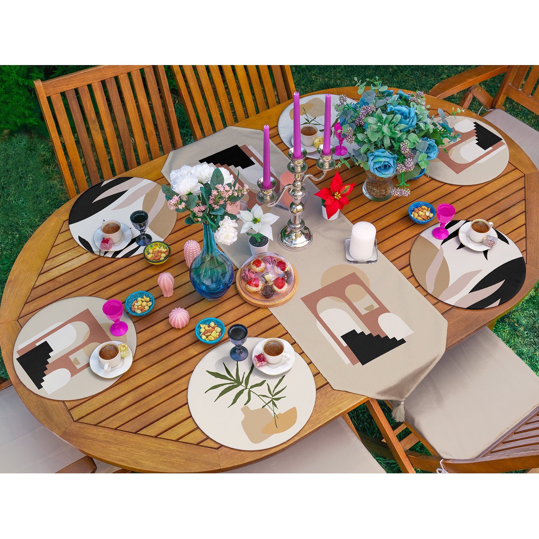 Realhomes 6+1 Bohem Tasarımlı Dijital Baskılı Özel Tasarım Püsküllü Runner ve Yuvarlak Servis Altlığı & Supla Seti
