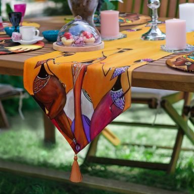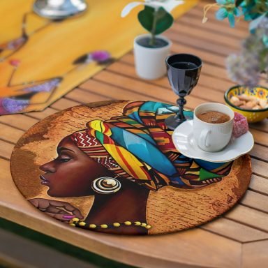 Realhomes 6+1 Etnik Afrika Kadınlar Özel Tasarımlı Dijital Baskılı Püsküllü Runner ve Yuvarlak Servis Altlığı & Supla Seti
