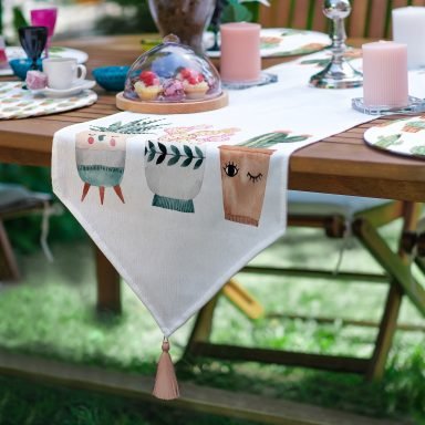 Realhomes 6+1 Minimal Kaktüsler Özel Tasarım Modern Püsküllü Runner ve Yuvarlak Servis Altlığı & Supla Seti