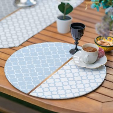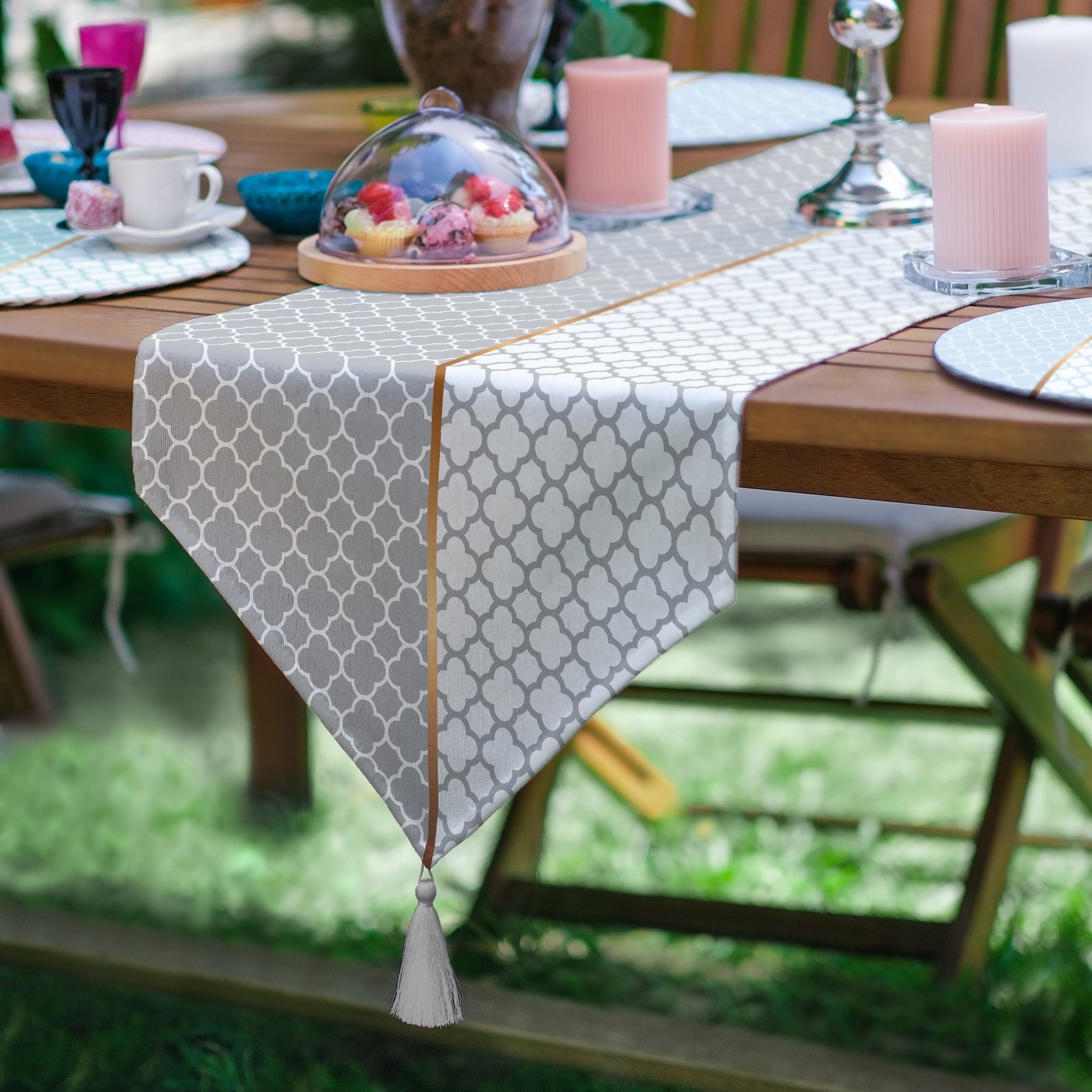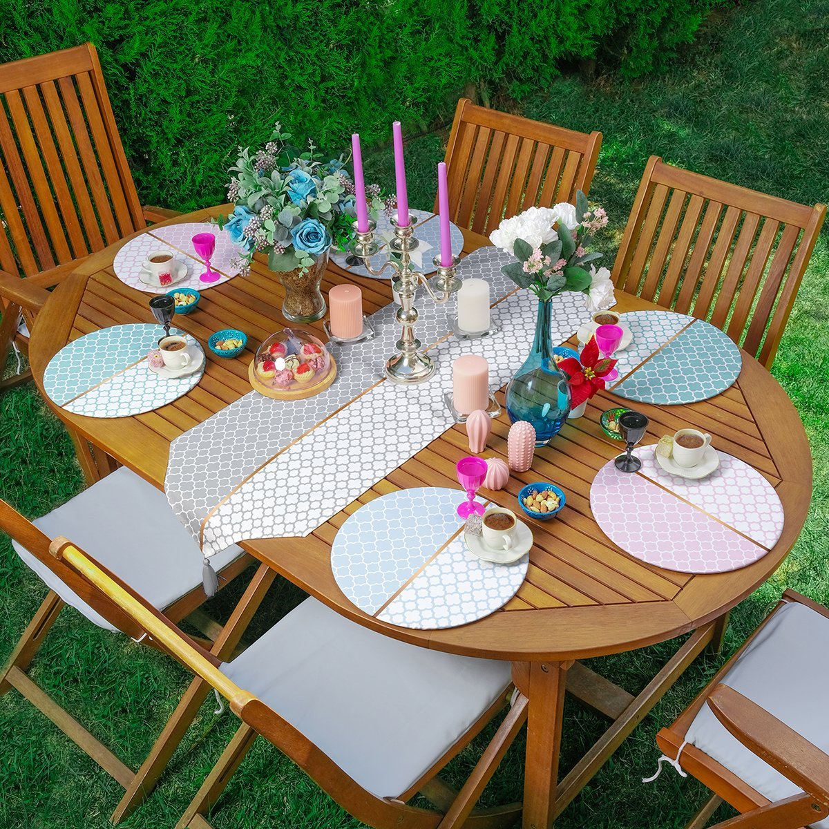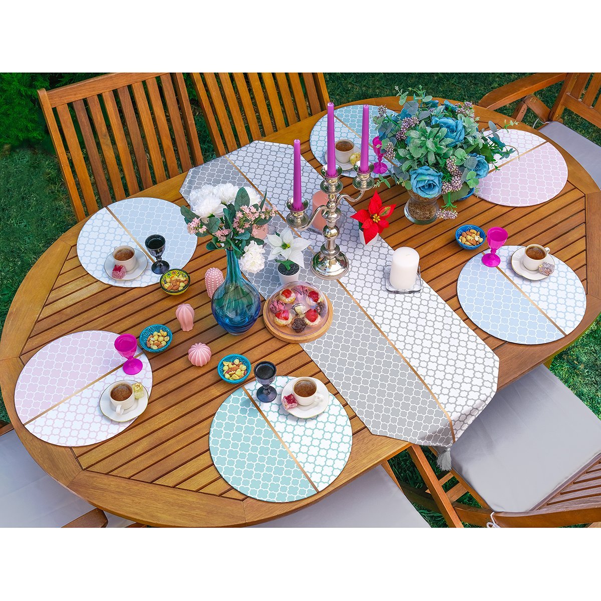 Realhomes 6+1 Renkli Ogea Tasarımlı Dijital Baskılı Modern Püsküllü Runner ve Yuvarlak Servis Altlığı & Supla Seti