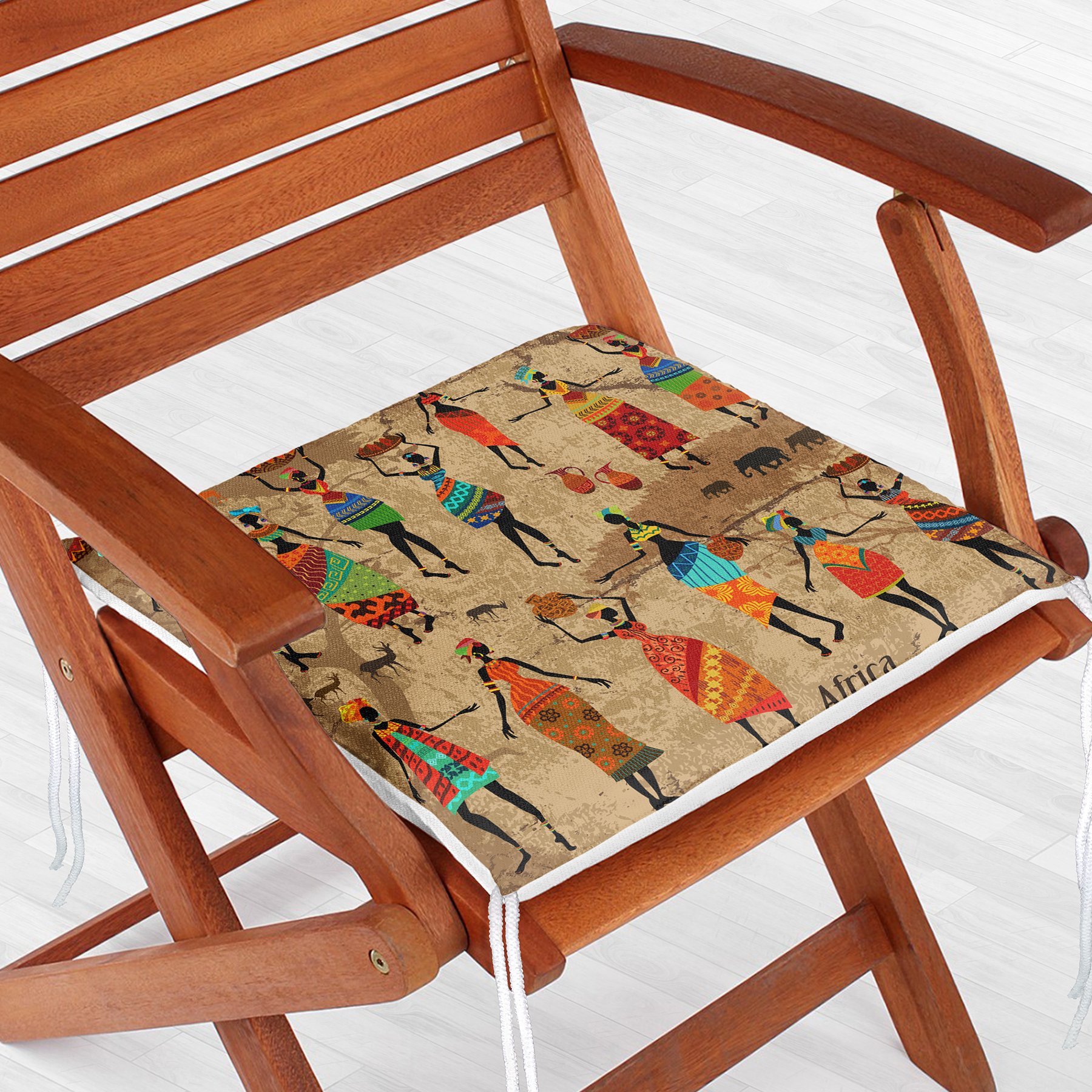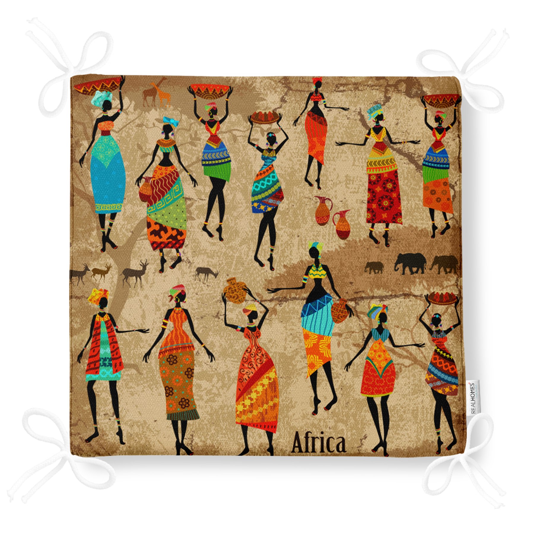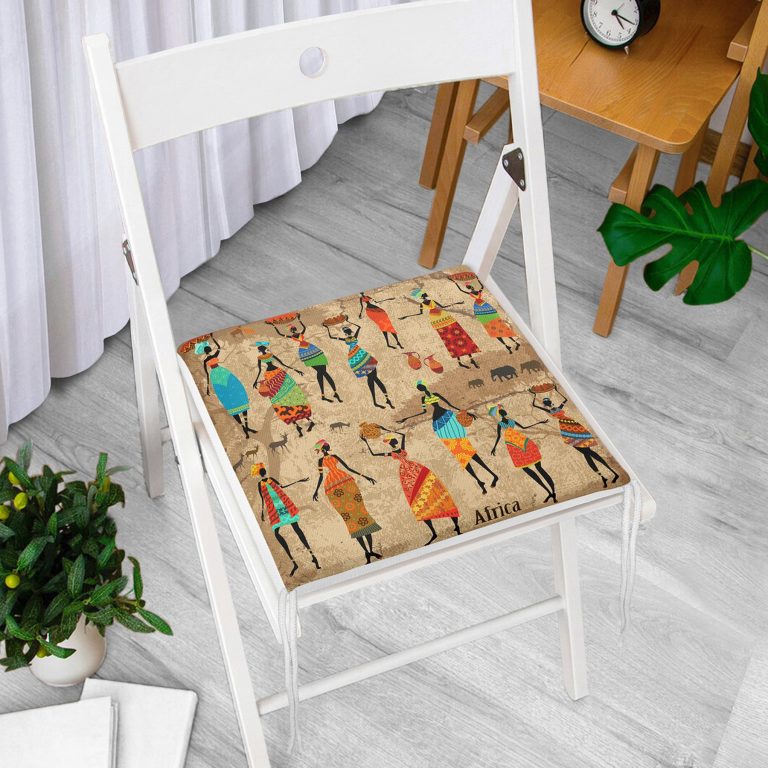 RealHomes Afrika Etnik Desenli Dijital Baskılı Modern Fermuarlı Sandalye Minderi