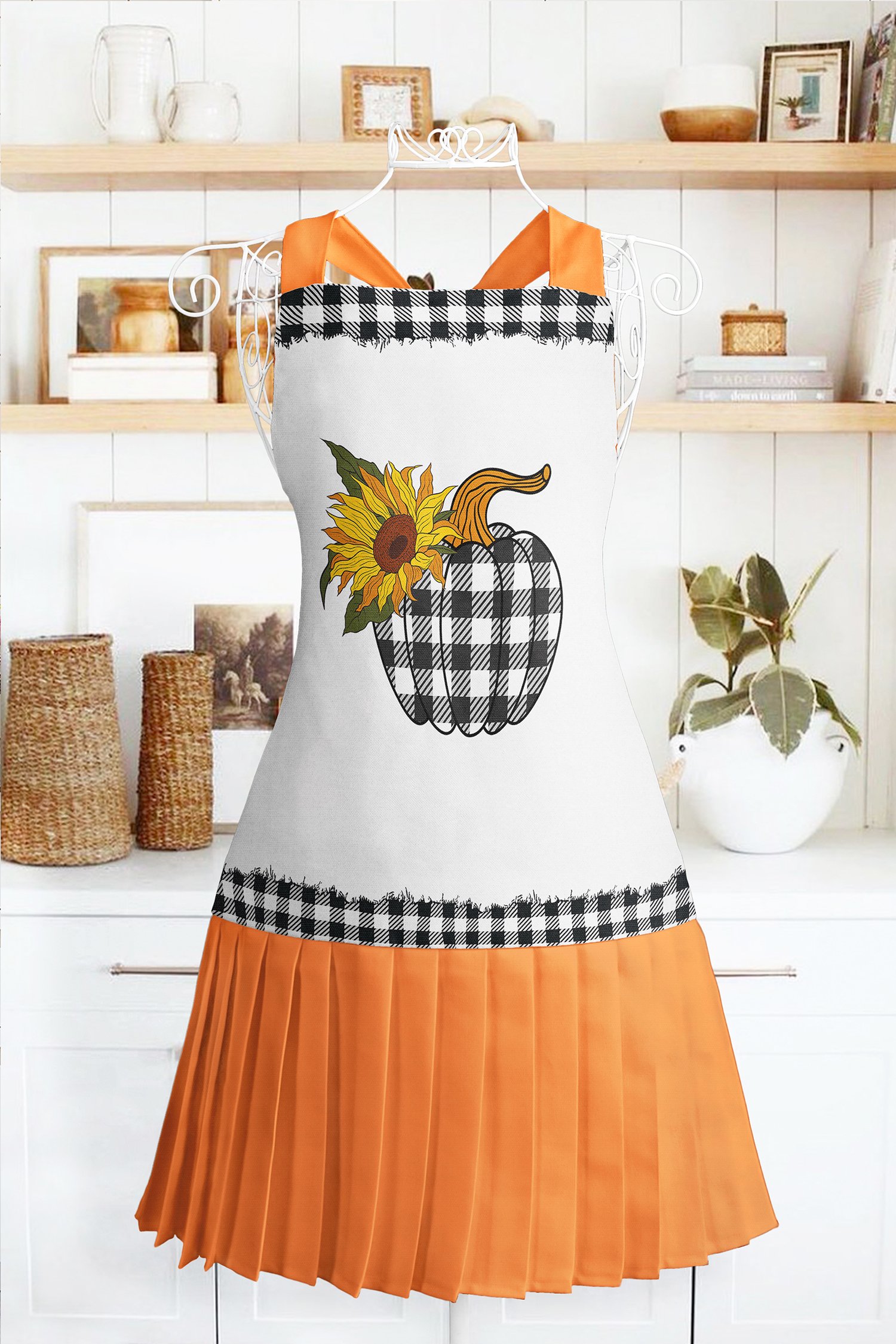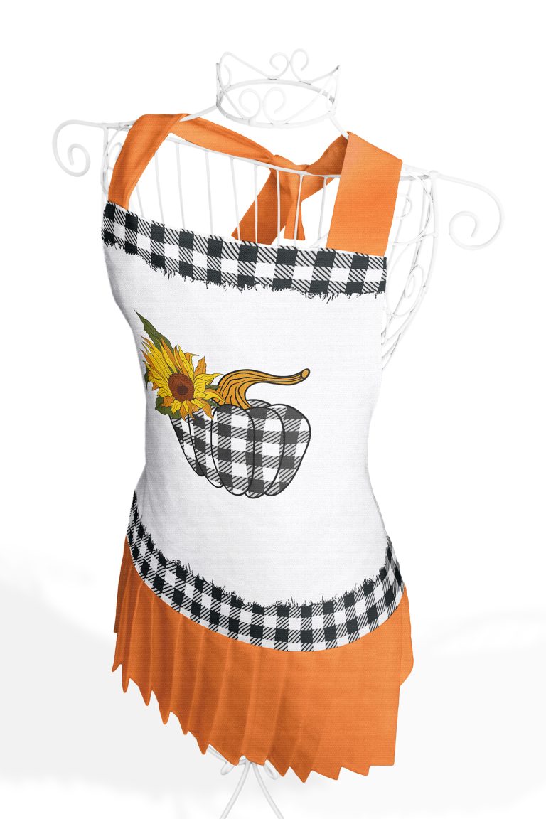 Realhomes Bal Kabağı Desenli Mutfak Önlüğü – Master Şef Ayçiçeği Motifli Askılı Bulaşık Aşçı Leke Tutmaz Dijital Baskılı Önlük