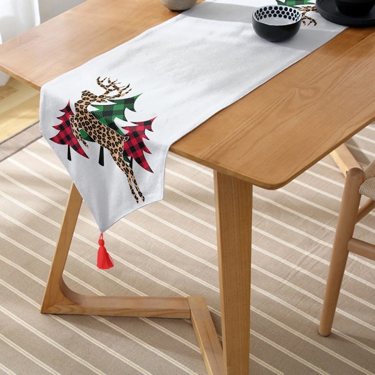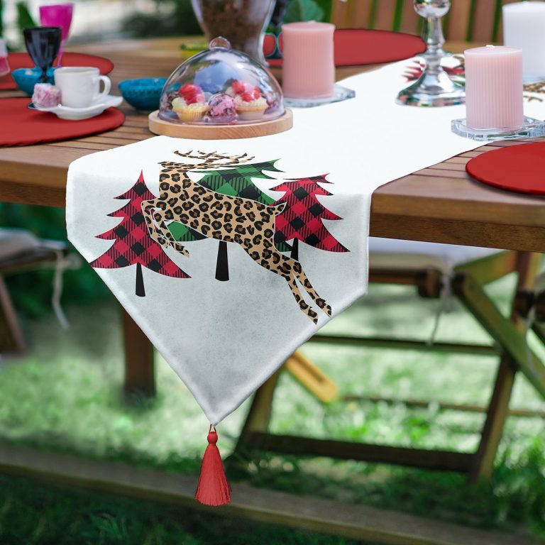Realhomes Beyaz Zemin Üzerinde Ekoseli Çamağacı Desenli Dijital Baskılı Özel Tasarım Püsküllü Şönil Üçgen Runner