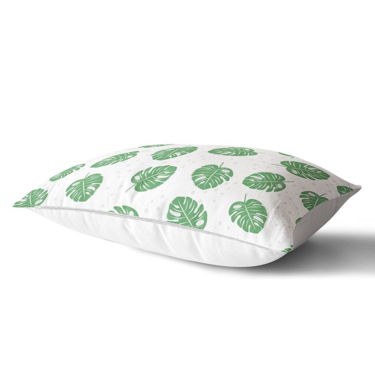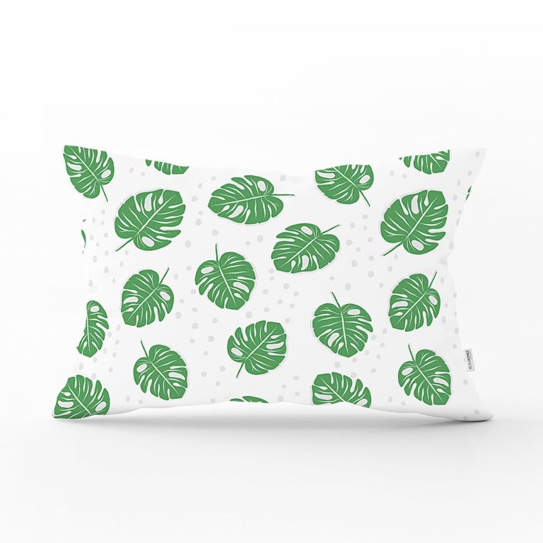 Realhomes Beyaz Zeminde Yapraklar Dijital Baskılı Modern Dikdörtgen Yastık Kılıfı