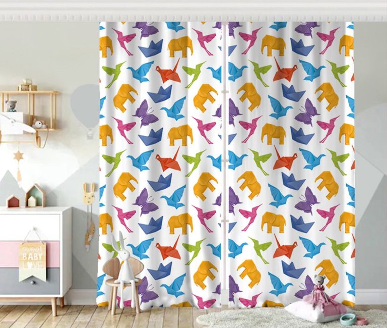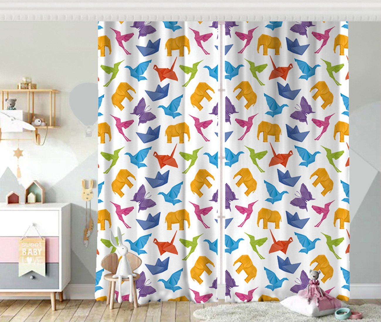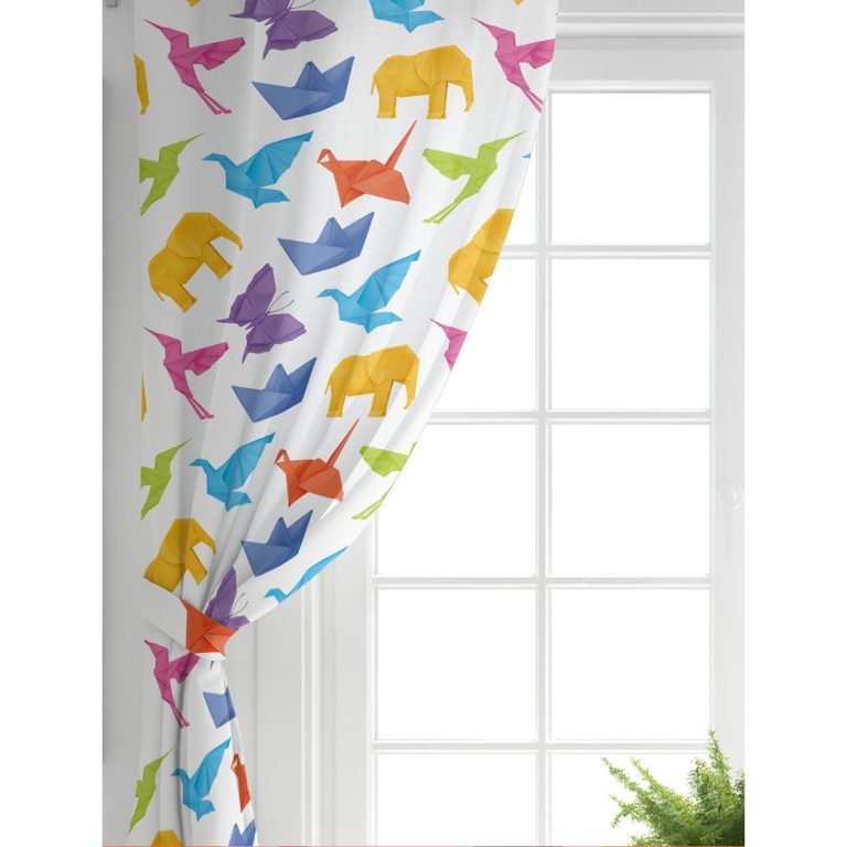 Realhomes Beyaz Zeminli Origami Sanatı Dijital Baskılı Modern Fon Perde