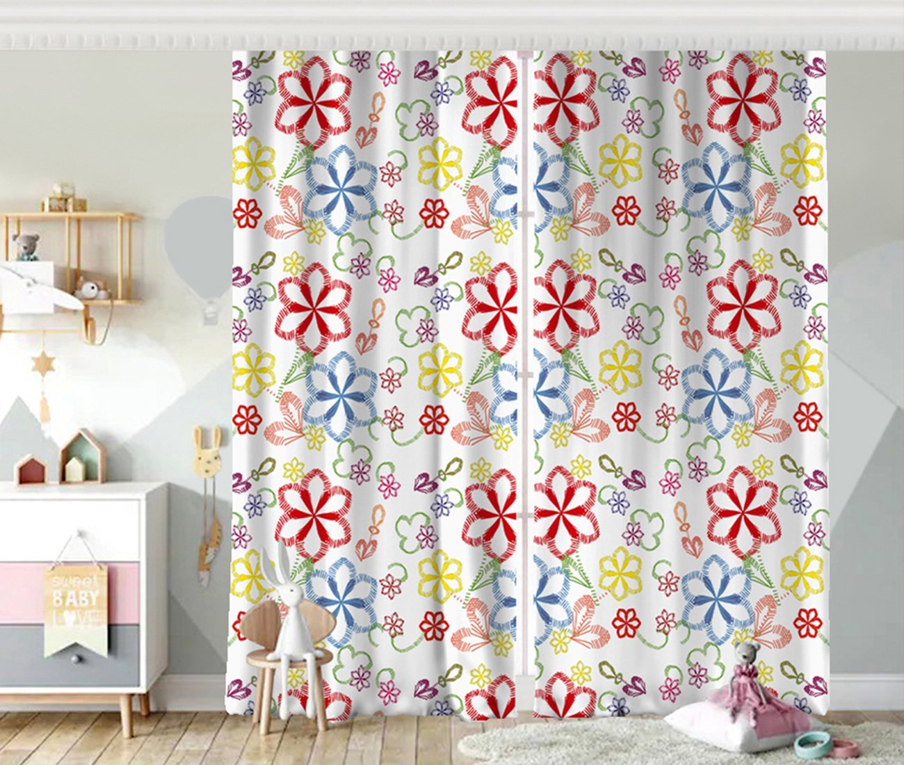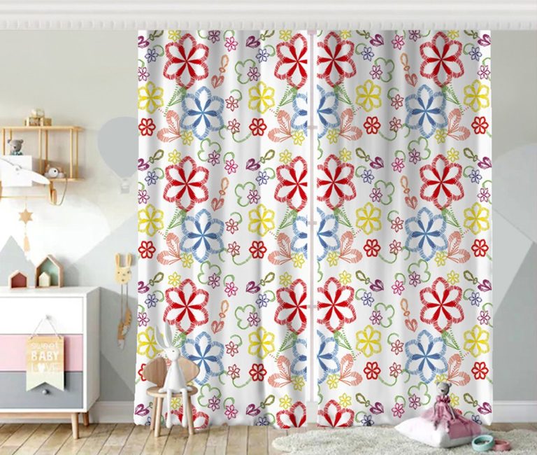 Realhomes Beyaz Zeminli Rengarenk Çiçekler Dijital Baskılı Modern Fon Perde