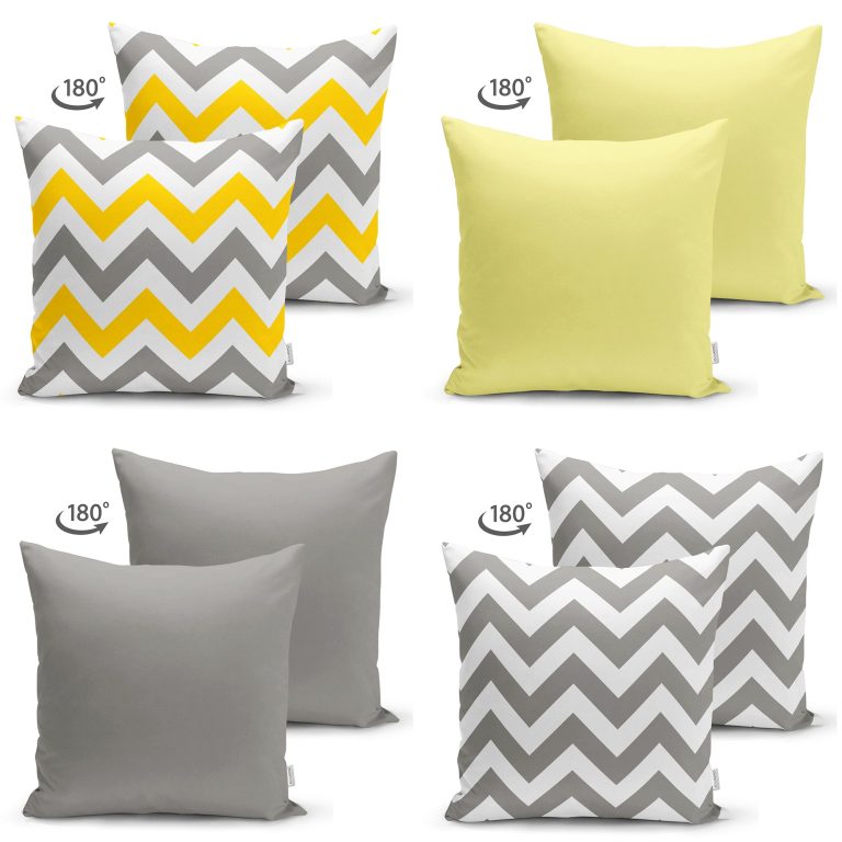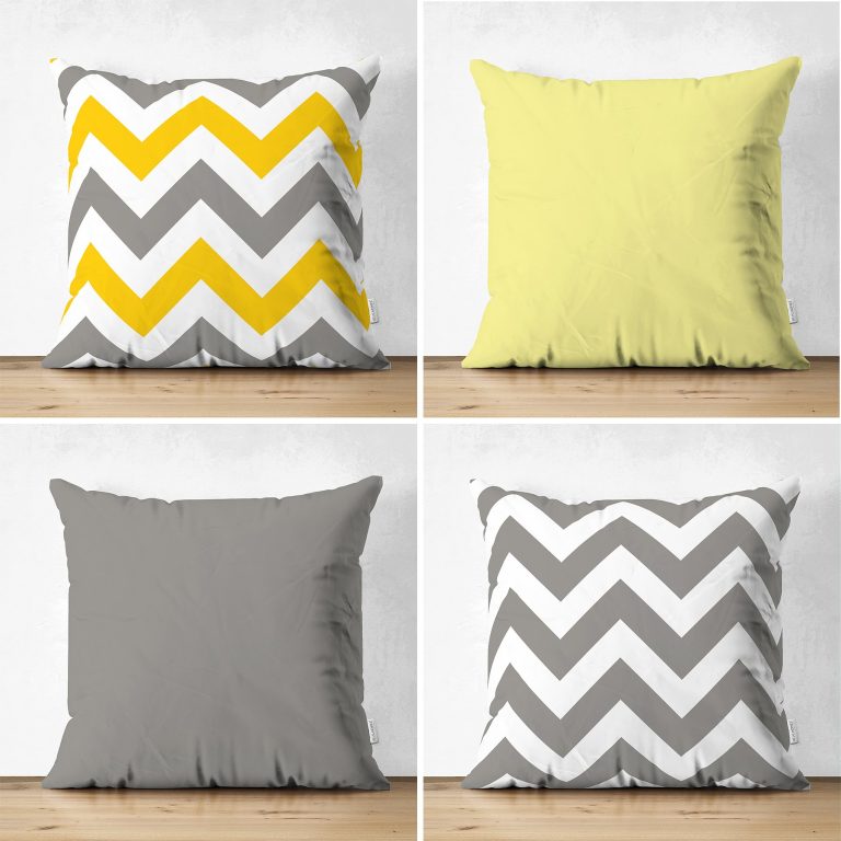Realhomes Sarı ve Grinin Uyumlu 4’lü Kombin Süet Yastık Kırlent Kılıf Seti