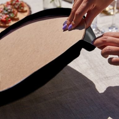 Realhomes Dalgalı Siyah Beyaz Zemin Afrika Kadın Motifli Püsküllü Runner & 6’lı Siyah Düz Renk Supla – Servis Altlığı
