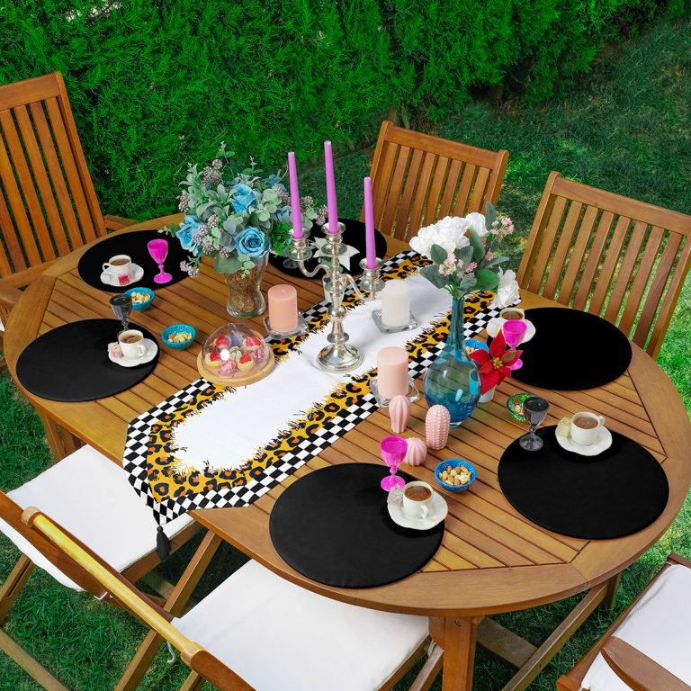 Realhomes Dama Zebra Desenli Özel Tasarım Püsküllü Runner & 6’lı Siyah Düz Renk Supla – Servis Altlığı