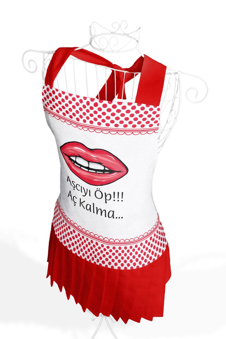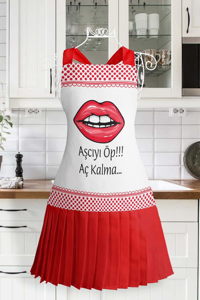 Realhomes Dudak Desenli Mutfak Önlüğü – Özel Tasarım Kırmızı Puantiye Motifli Askılı Bulaşık Aşçı Leke Tutmaz Dijital Baskılı Önlük