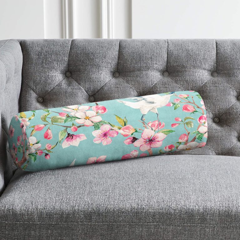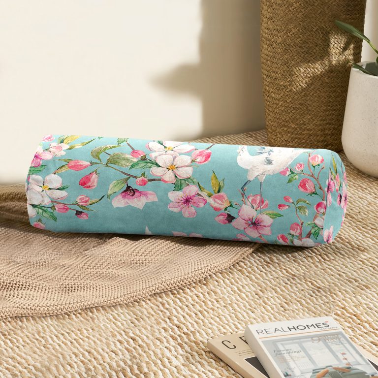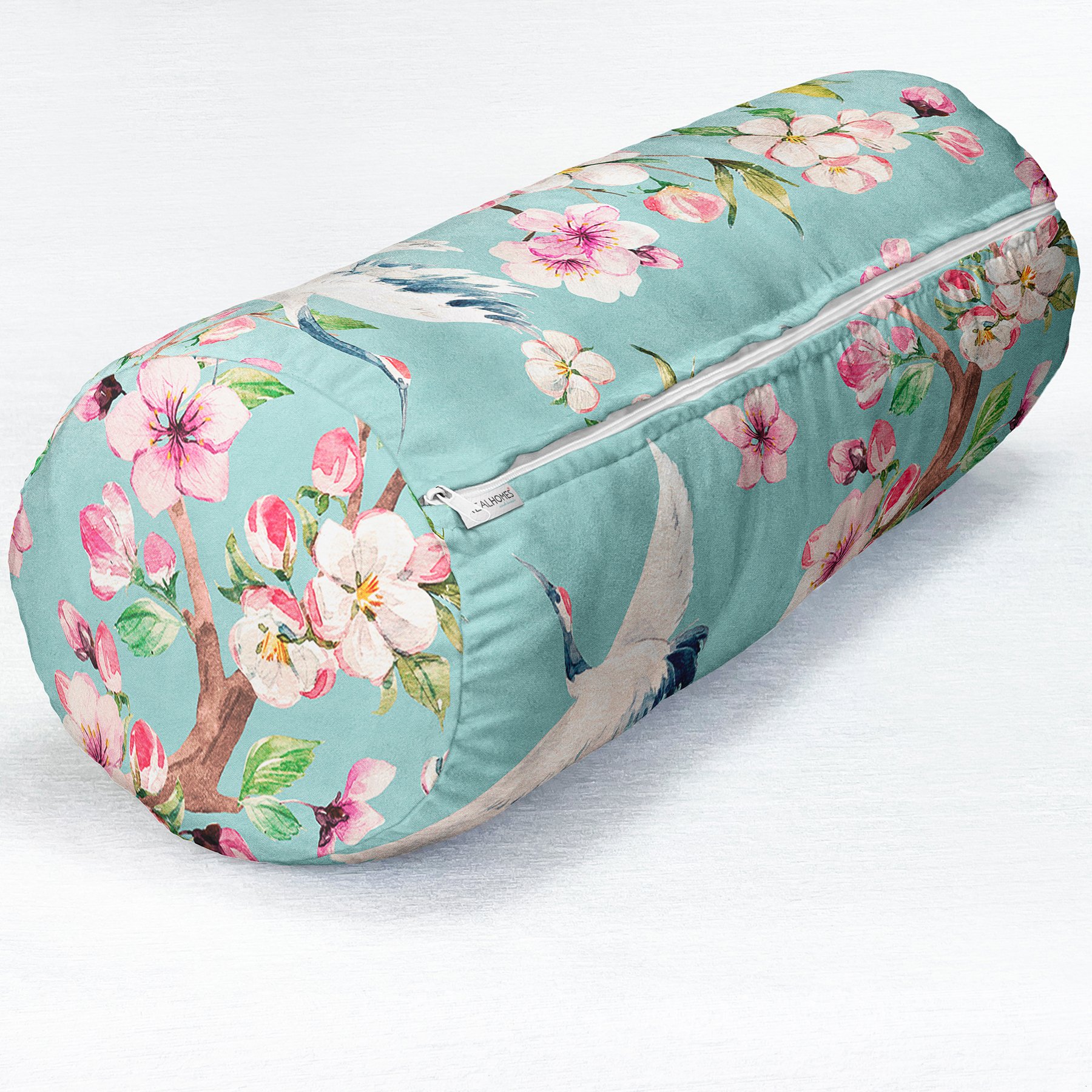 Realhomes Ebabil Kuşları Motifli Modern İç Dolgulu – Fermuarlı Süet Silindir Rulo Yastık Kırlent