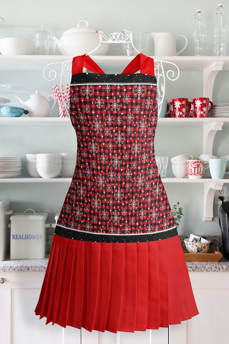 Realhomes Ekose Desenli Mutfak Önlüğü – Master Şef Kar Tanesi Motifli Askılı Bulaşık Aşçı Leke Tutmaz Dijital Baskılı Önlük