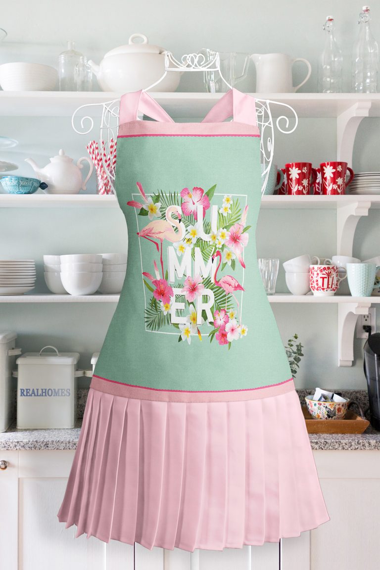 Realhomes Flamingo Desenli Mutfak Önlüğü – Master Şef Summer Motifli Askılı Bulaşık Aşçı Leke Tutmaz Dijital Baskılı Önlük