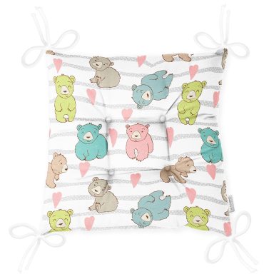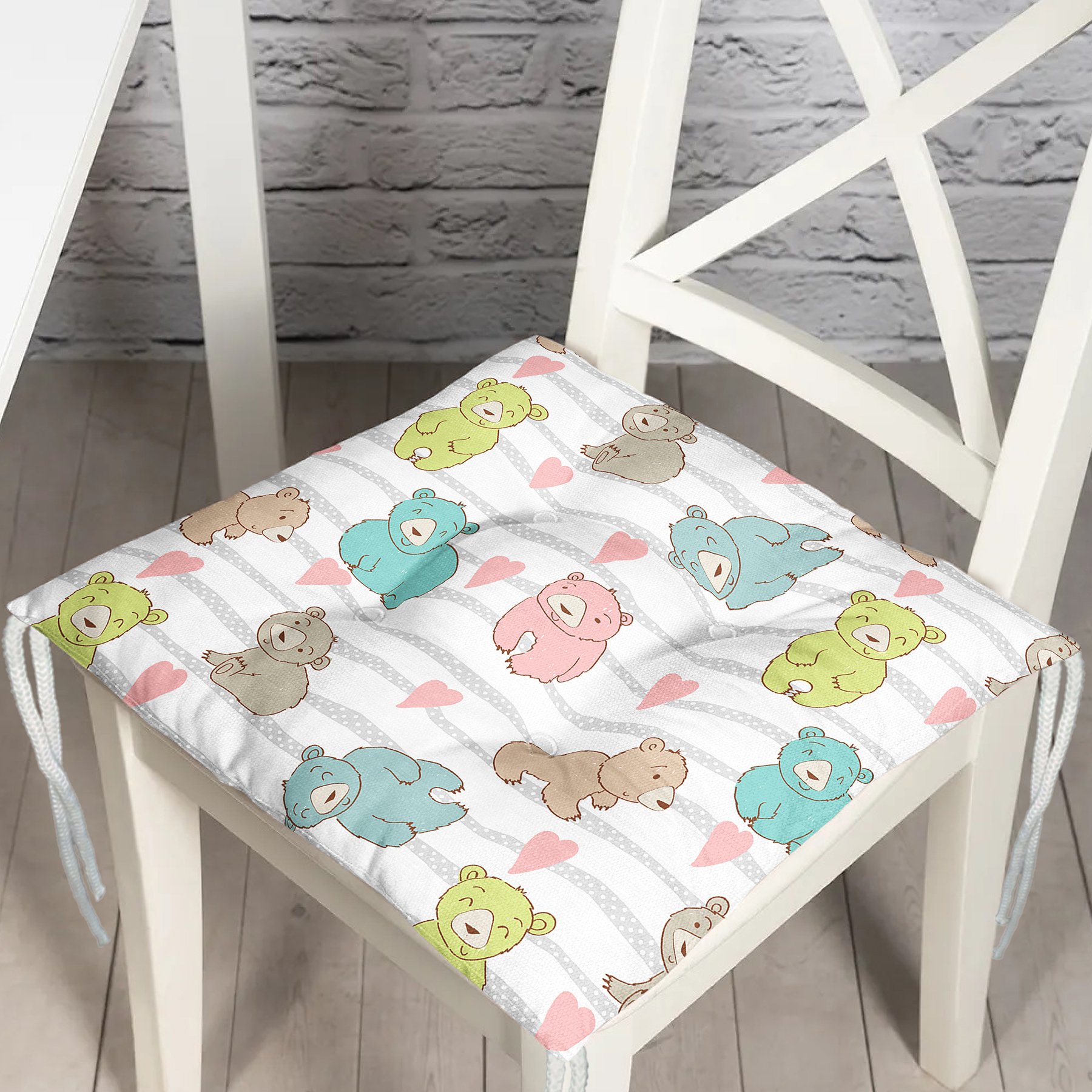Realhomes Gri Çizgi Üzerinde Renkli Ayıcık Özel Tasarım Dijital Baskılı Modern Pofidik Sandalye Minderi