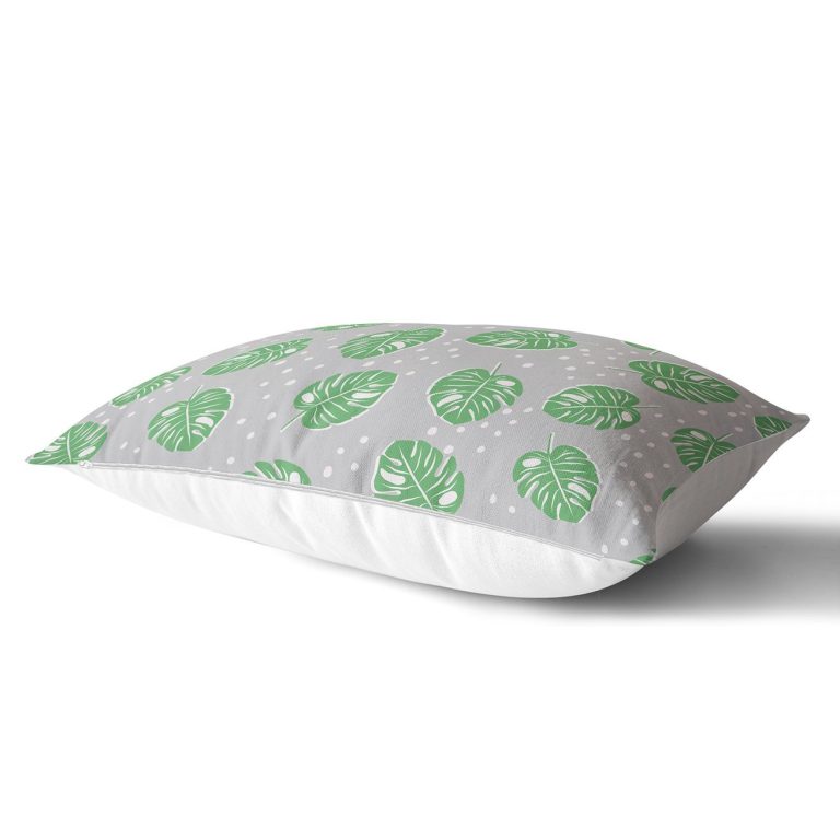 Realhomes Gri Zeminde Yapraklar Dijital Baskılı Modern Dikdörtgen Yastık Kılıfı