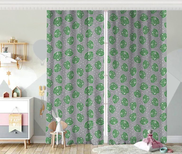 Realhomes Gri Zeminde Yapraklar Dijital Baskılı Modern Fon Perde