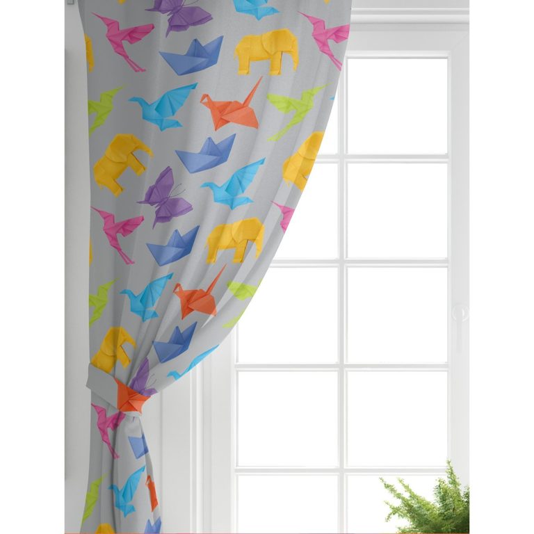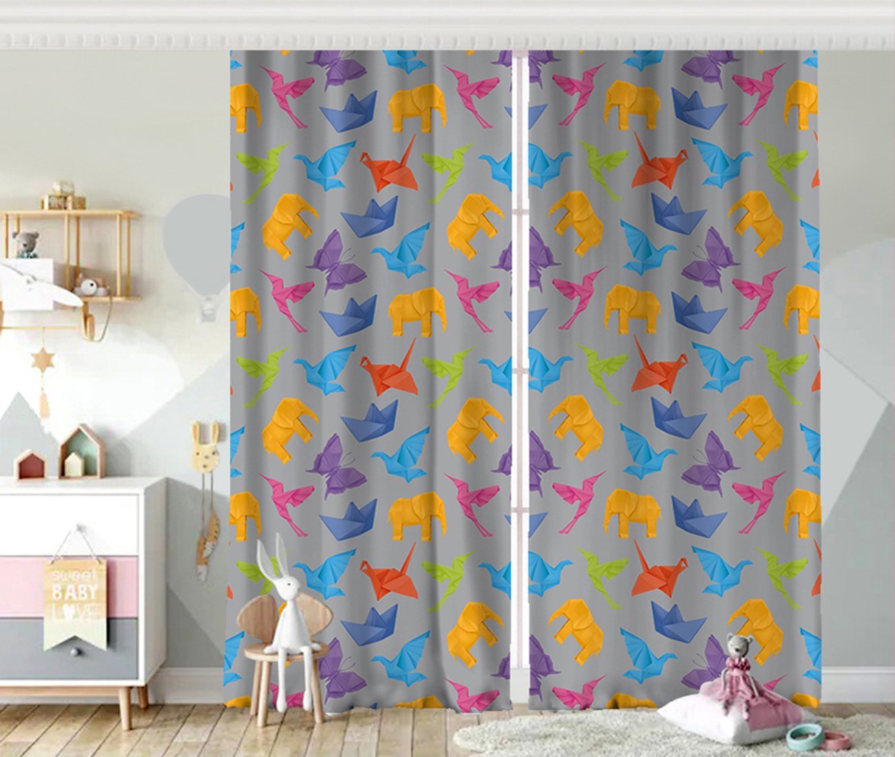 Realhomes Gri Zeminli Origami Sanatı Dijital Baskılı Modern Fon Perde