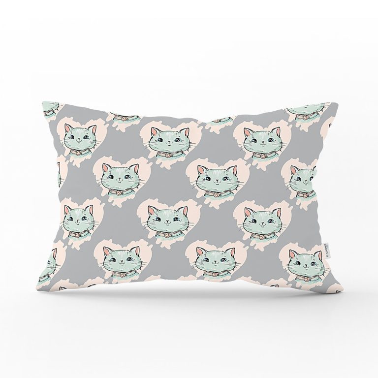 Realhomes Kedi Desenli Dijital Baskılı Modern Dikdörtgen Kırlent Kılıfı