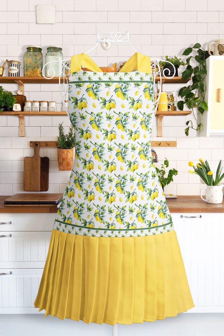 Realhomes Limon Desenli Mutfak Önlüğü – Master Şef Bahar Motifli Askılı Bulaşık Aşçı Leke Tutmaz Dijital Baskılı Önlük