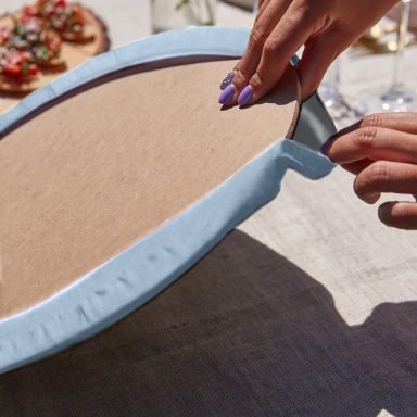 Realhomes Mavi & Beyaz Ogea Desenli Püsküllü Runner & 6’lı Mavi Düz Renk Supla – Servis Altlığı