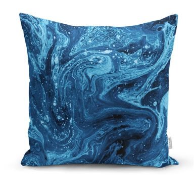 Realhomes Mavi Mermer Kombinli 4’lü Yastık Kırlent Kılıfı