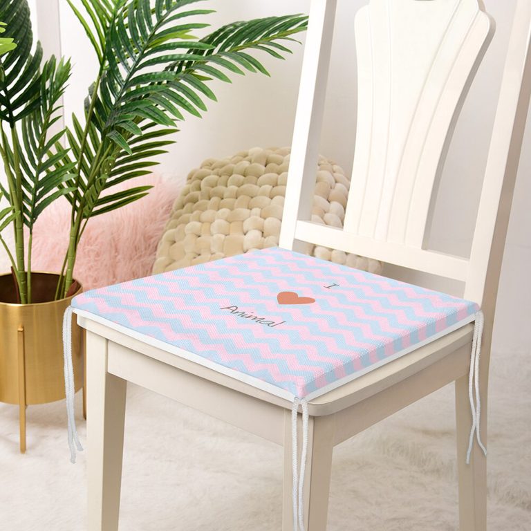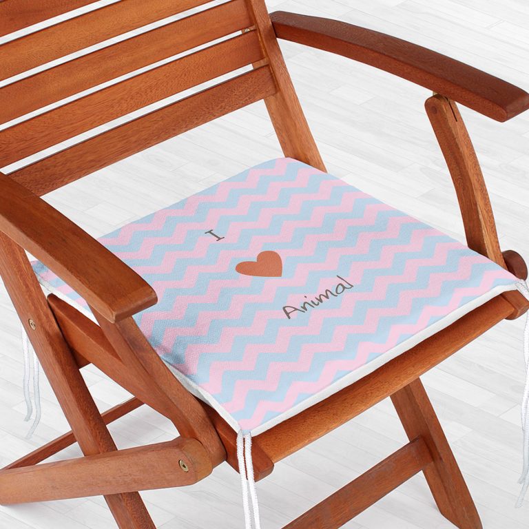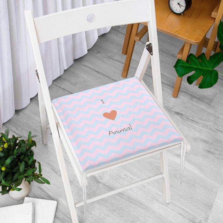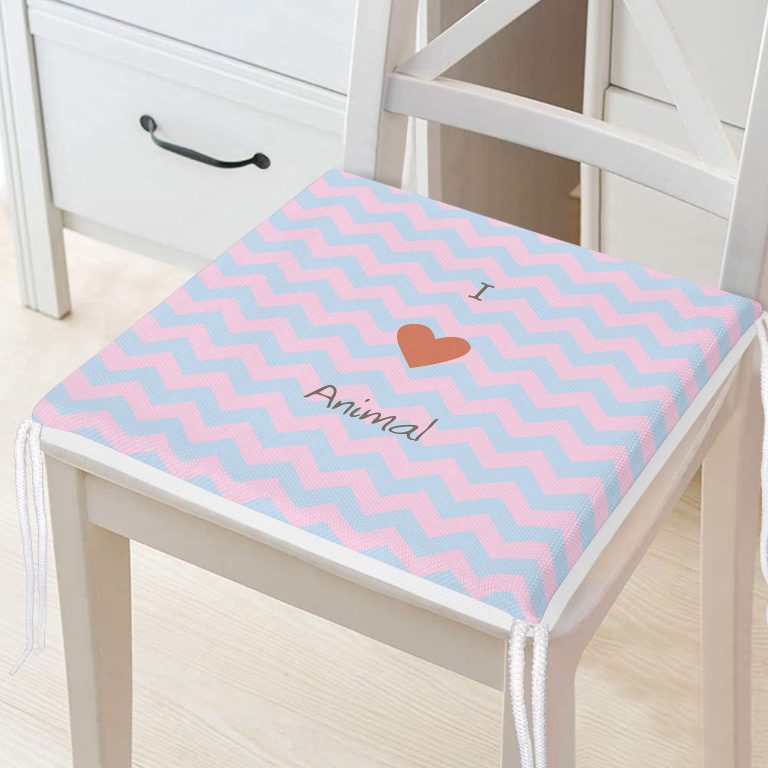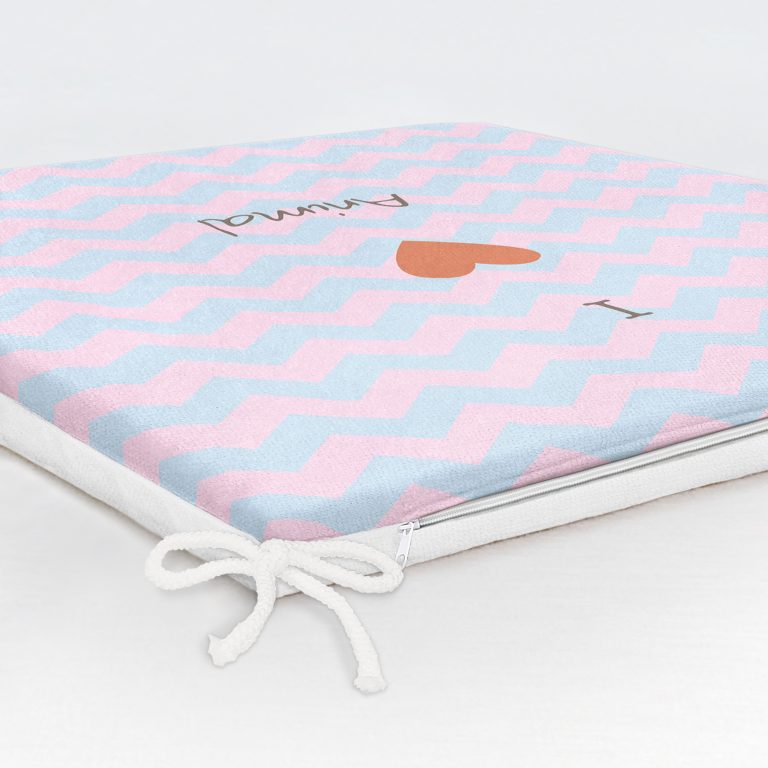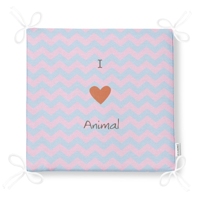 Realhomes Mavi Pembe Zikzaklı I Love Animal Desenli Modern Fermuarlı Sandalye Minderi