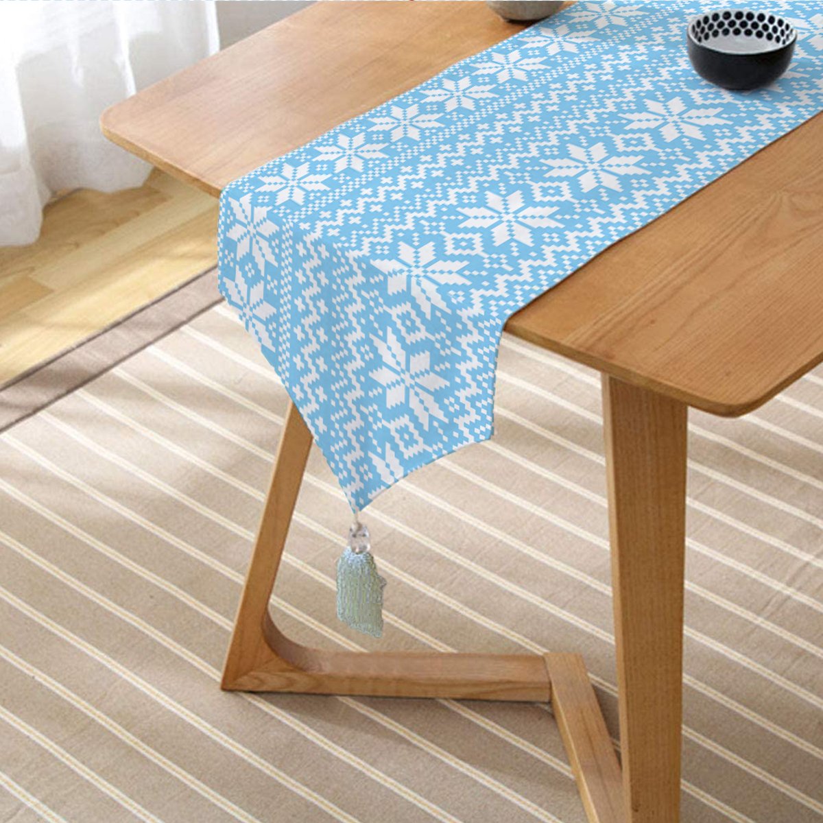 Özel Tasarımlı Püsküllü Üçgen Runner sofralarınıza bambaşka bir hava katın.