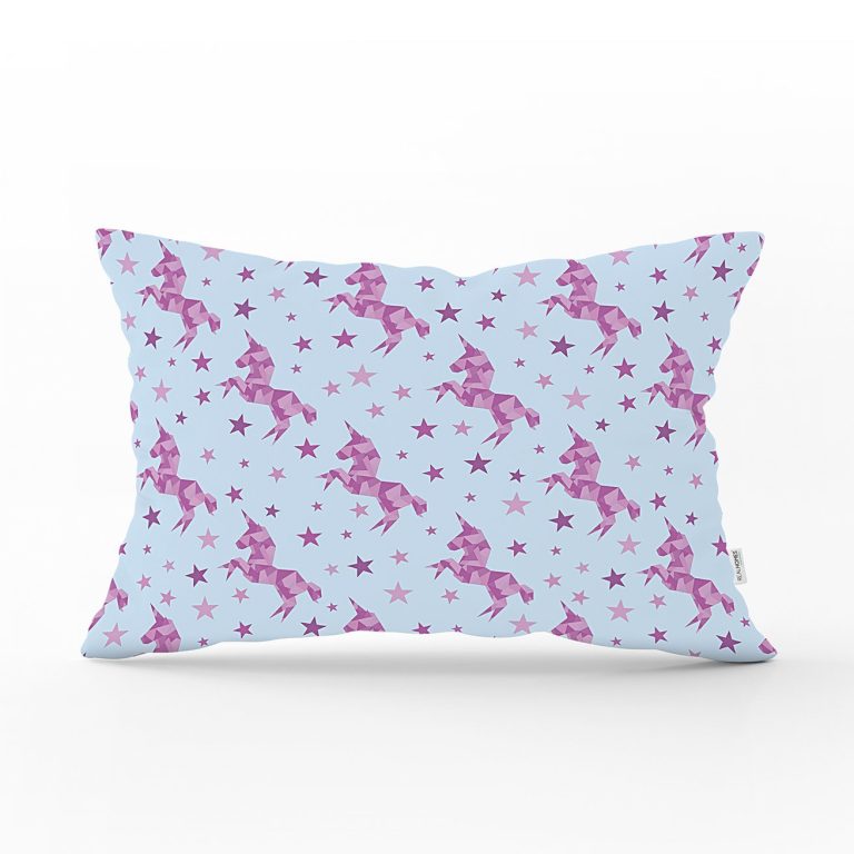Realhomes Mavi Zeminde Pembe Yıldız Dijital Baskılı Modern Dikdörtgen Yastık Kılıfı