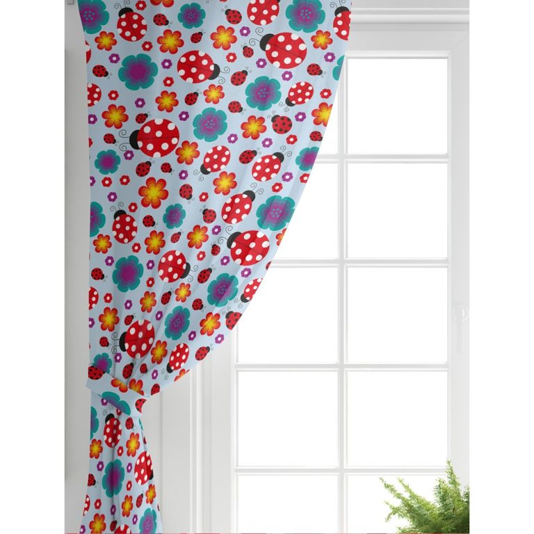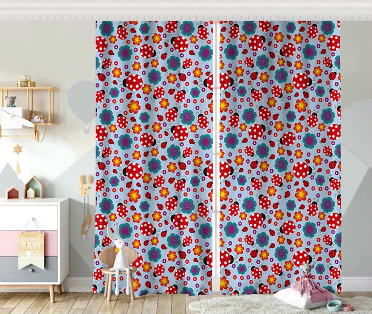 Realhomes Mavi Zeminde Uğurböceği Dijital Baskılı Modern Fon Perde