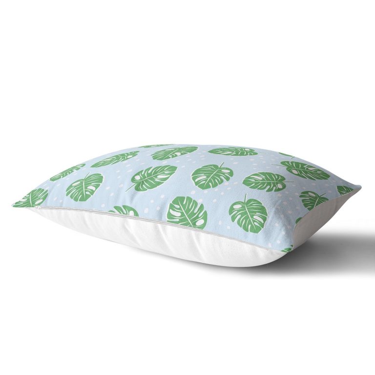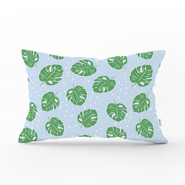Realhomes Mavi Zeminde Yapraklar Dijital Baskılı Modern Dikdörtgen Yastık Kılıfı