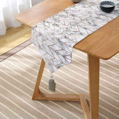 Realhomes Mermer Zeminli Geometrik Desenli Modern Özel Tasarım Püsküllü Şönil Üçgen Runner