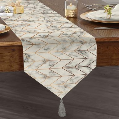 Realhomes Mermer Zeminli Geometrik Desenli Modern Özel Tasarım Püsküllü Şönil Üçgen Runner