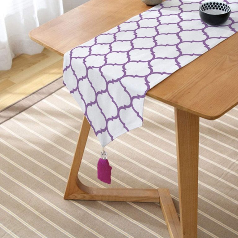 Realhomes Mor Renkli Ogea Desenli Dijital Baskılı Modern Özel Tasarım Püsküllü Şönil Üçgen Runner
