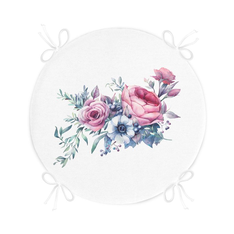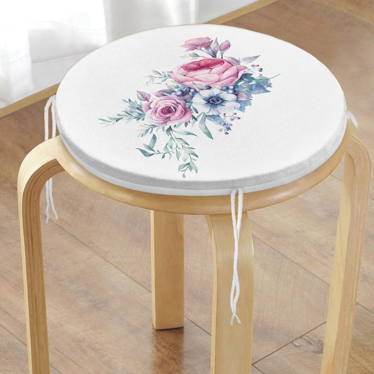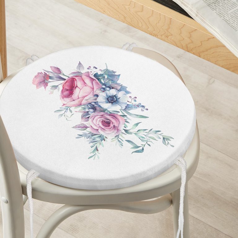 Realhomes Özel Tasarım Çiçek Desenli Dijital Baskılı Yuvarlak Fermuarlı Sandalye Minderi