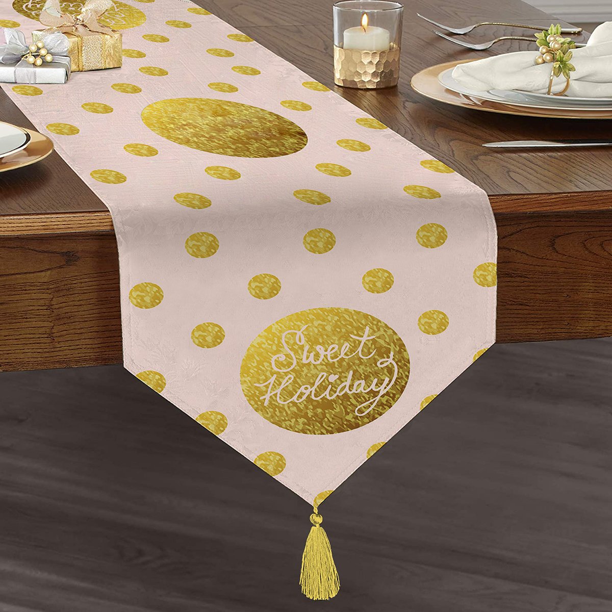 Özel Tasarımlı Püsküllü Üçgen Runner sofralarınıza bambaşka bir hava katın.