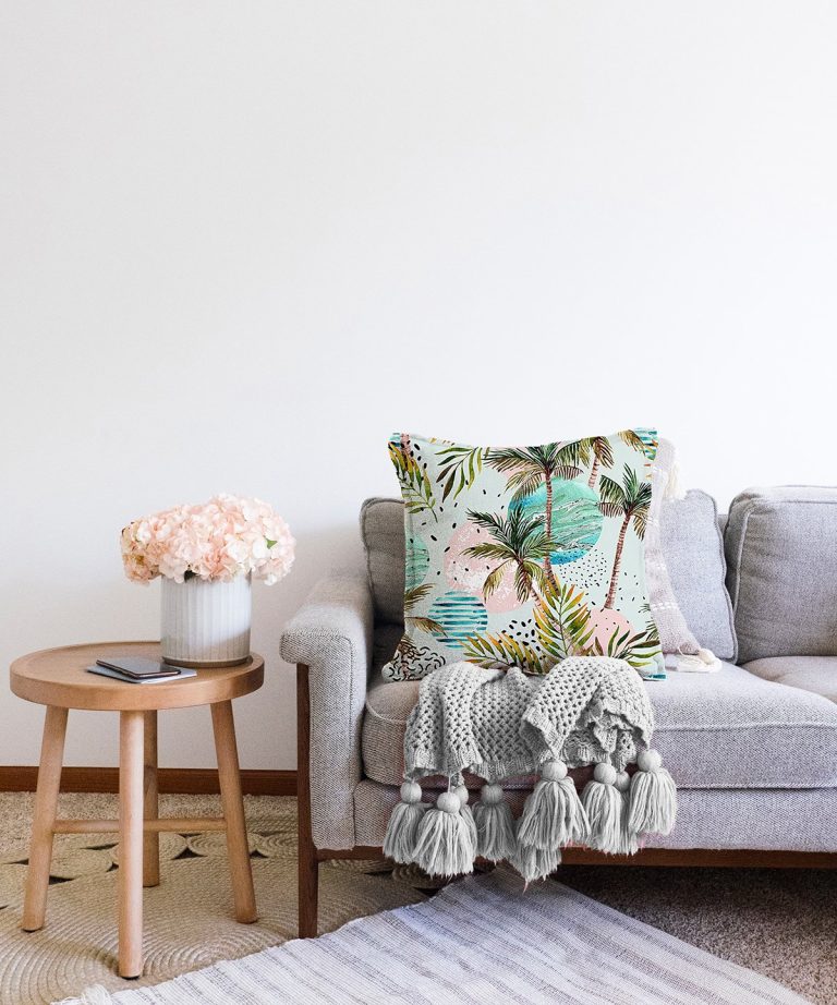 Realhomes Palmiye Çizim Raşel Yastık Kırlent Kılıfı