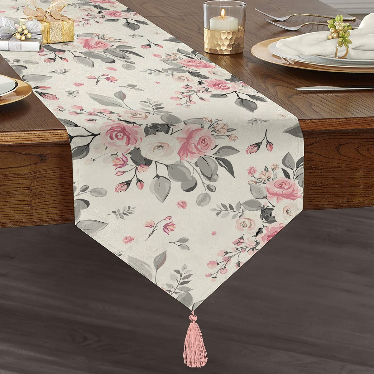 Özel Tasarımlı Püsküllü Üçgen Runner sofralarınıza bambaşka bir hava katın.