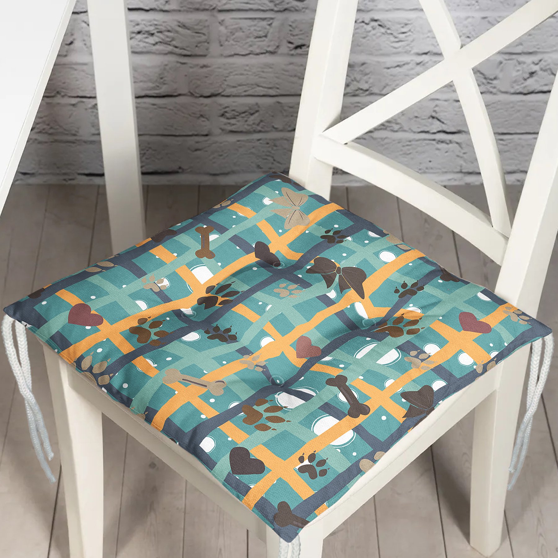 Realhomes Pati Kemik Kurdele Desenli Dijital Baskılı Modern Pofidik Sandalye Minderi