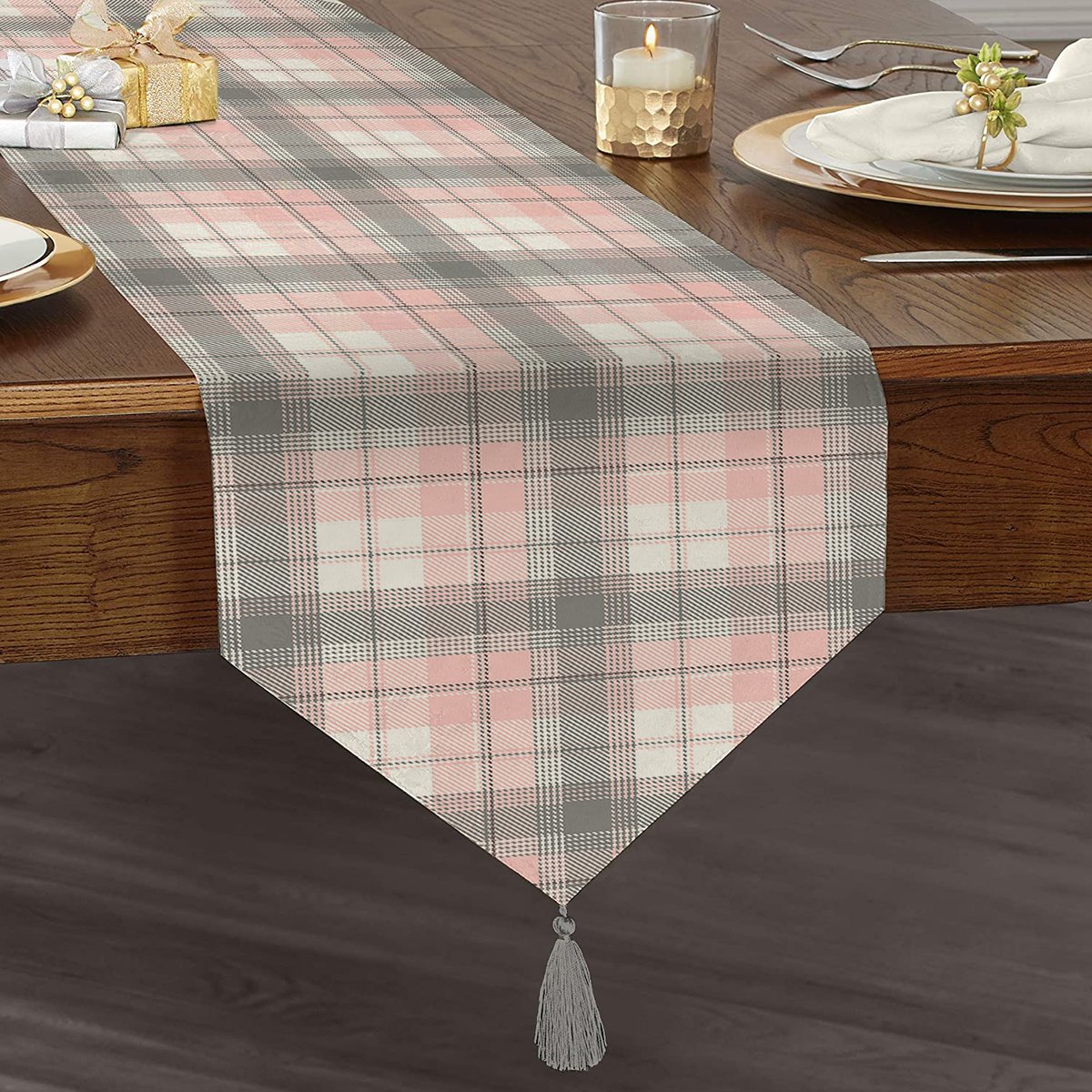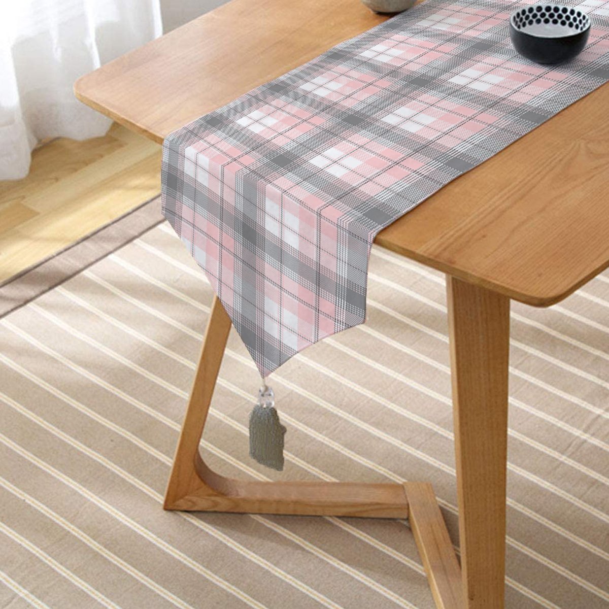 Realhomes Pembe Gri Ekose Desenli Dekoratif Özel Tasarım Püsküllü Şönil Üçgen Runner