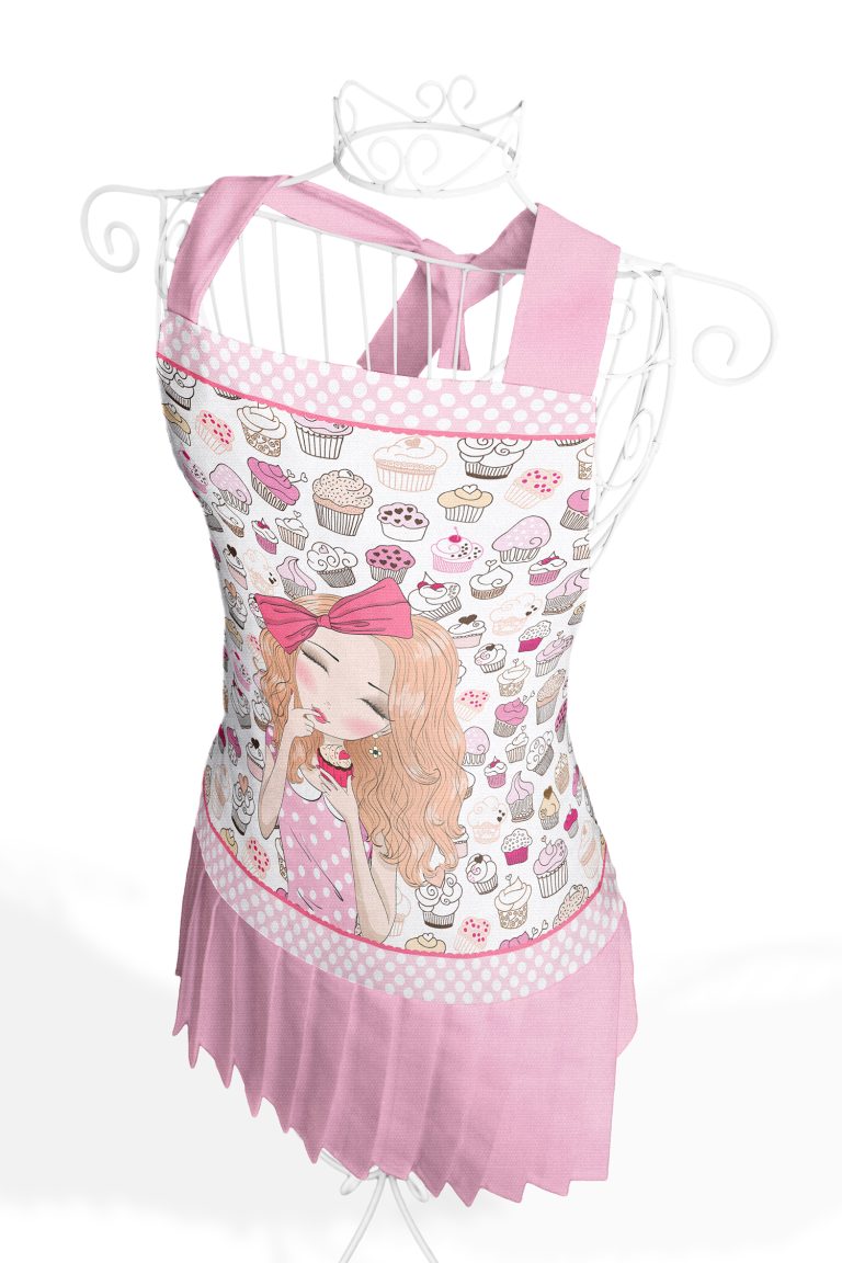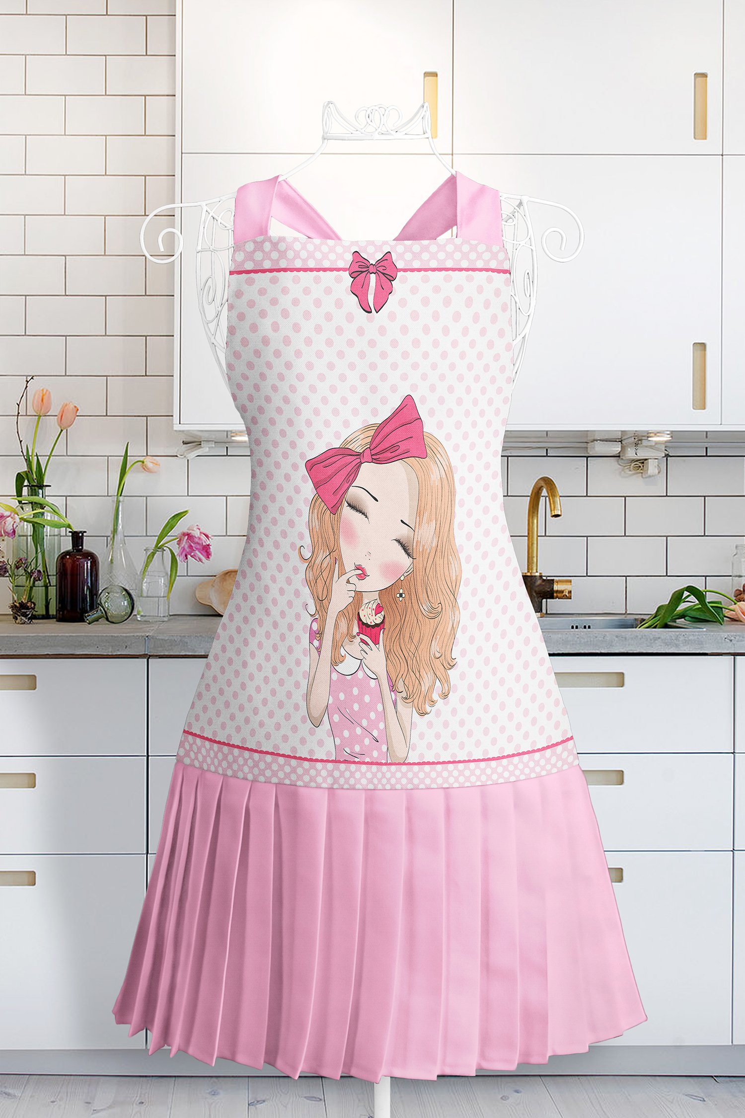 Realhomes Pembe Kurdeleli Kız Desenli Mutfak Önlüğü – Özel Tasarım Cupcake Motifli Askılı Bulaşık Aşçı Leke Tutmaz Dijital Baskılı Önlük