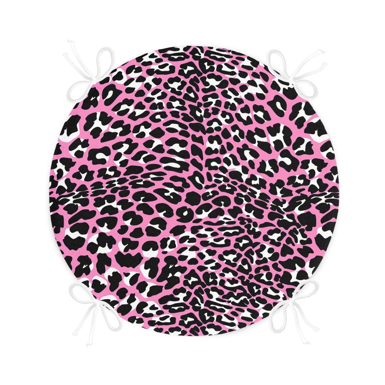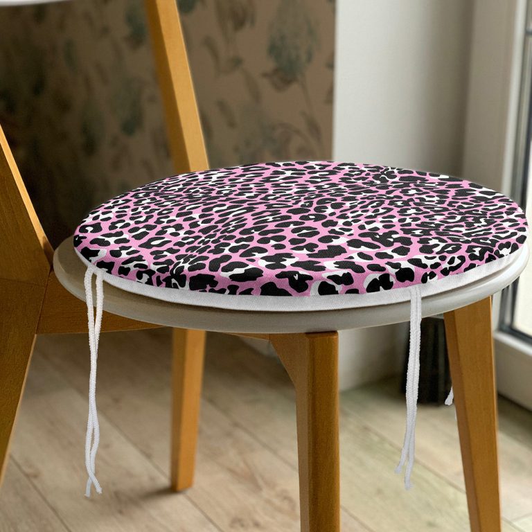 Realhomes Pembe Renkli Leopar Desenli Modern Yuvarlak Fermuarlı Sandalye Minderi