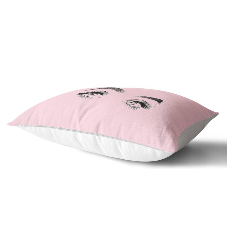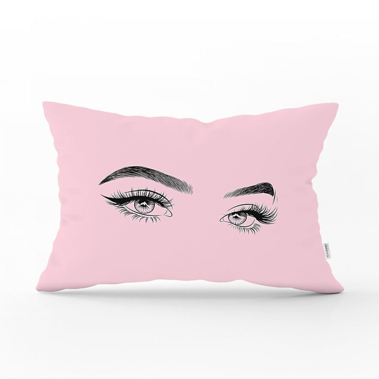 RealHomes Pembe Zeminde Kirpik Motifli Özel Tasarım Dikdörtgen Yastık Kılıfı