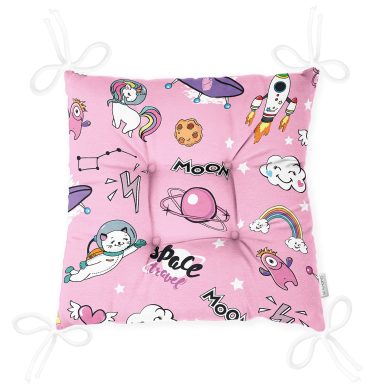 Realhomes Pembe Zeminli Uzay Tasarımlı Dijital Baskılı Modern Pofidik Sandalye Minderi