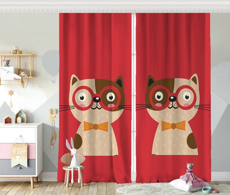 Realhomes Renkli Kedi Dijital Baskılı Modern Fon Perde