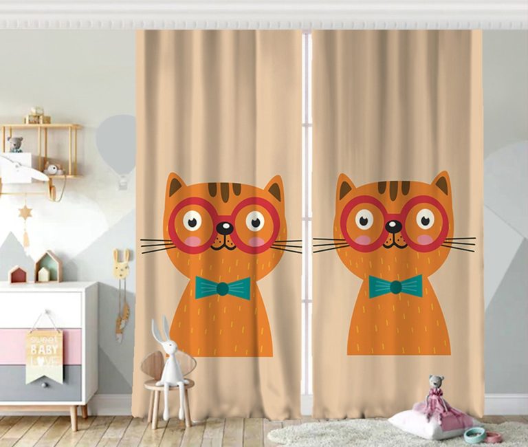 Realhomes Renkli Kedi Dijital Baskılı Modern Fon Perde